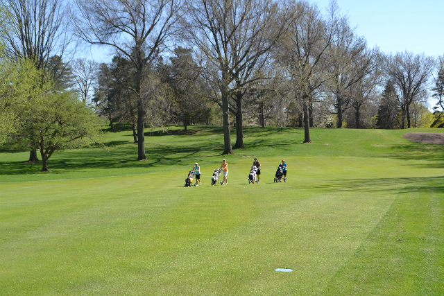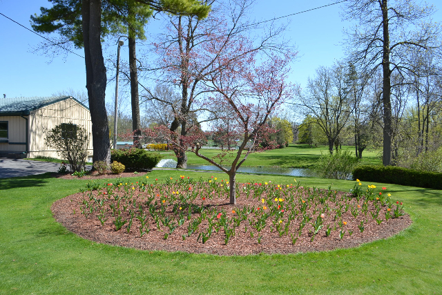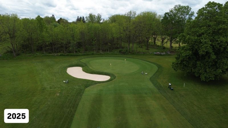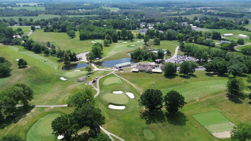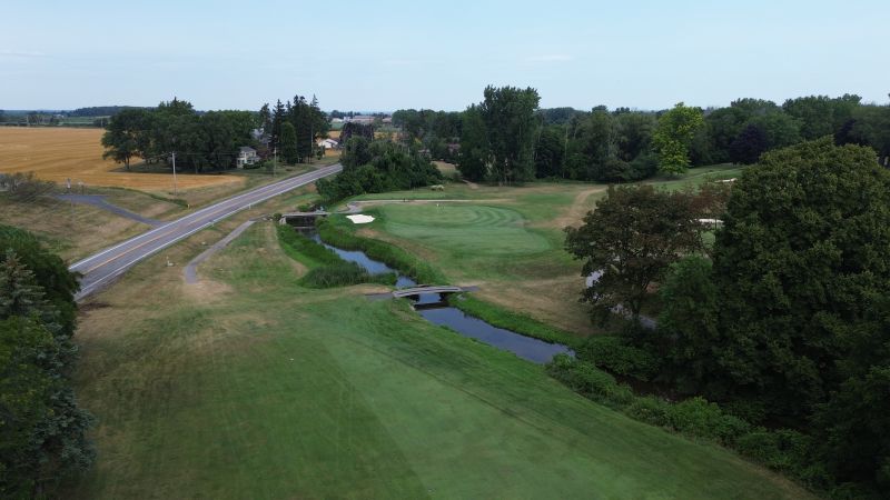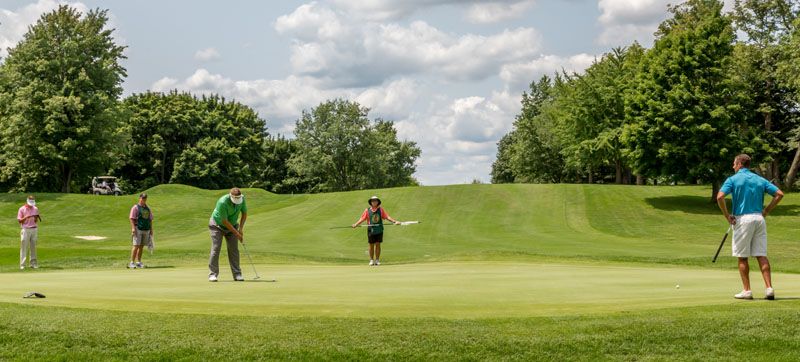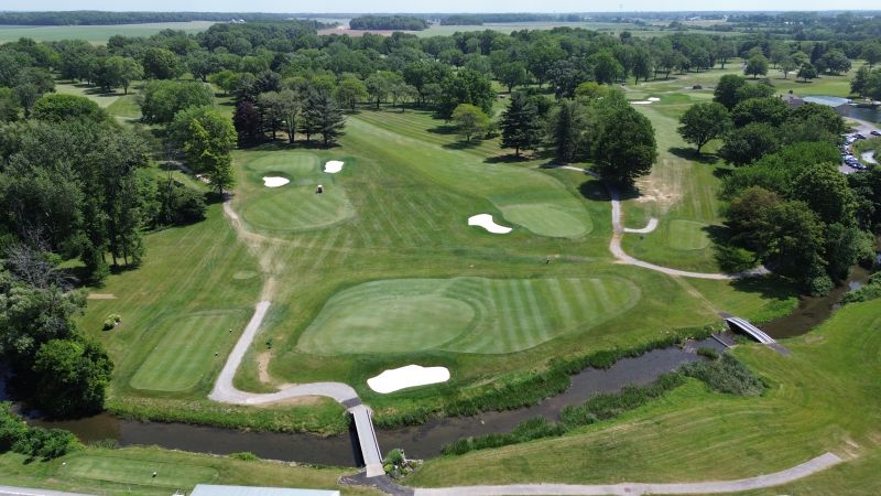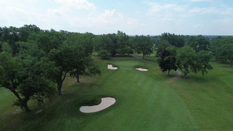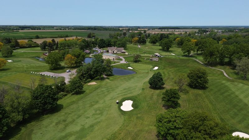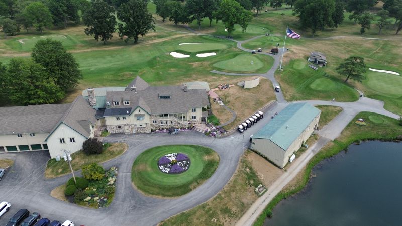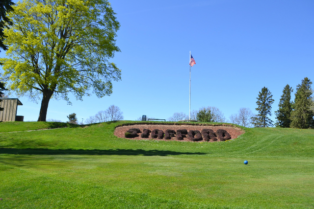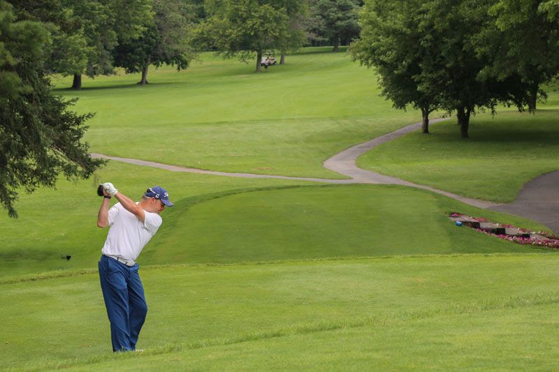 | Hole #18 – The finishing hole is a short 271-yard, par 4, that creates a "risk/reward" dilemma for the longer hitter. Fairway and greenside bunkers are well-placed to catch the errant shot, and a drive just short of the small green will result in a very delicate second shot. With the 18th hole in full view of the clubhouse lounge and the two covered patios, it has been named "the best finishing hole for spectators" in the Rochester District. |