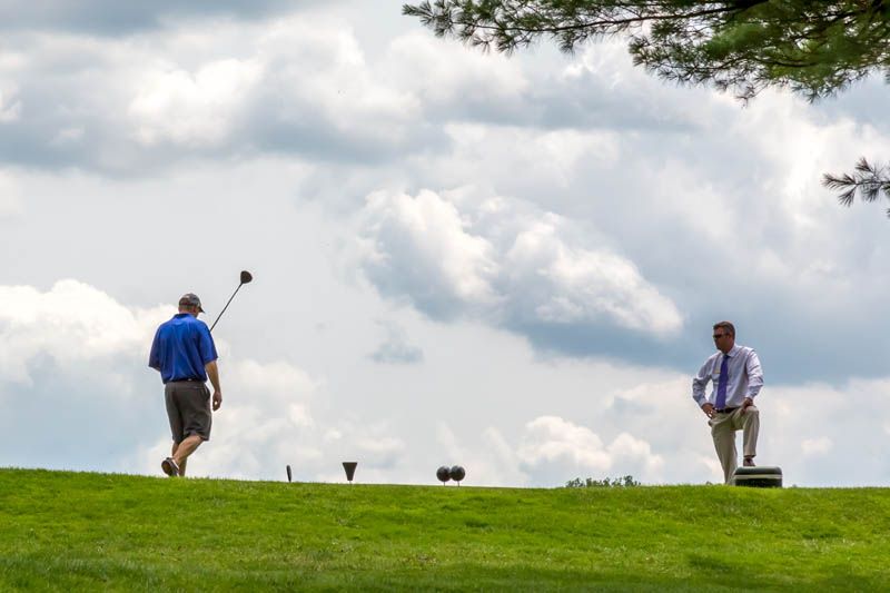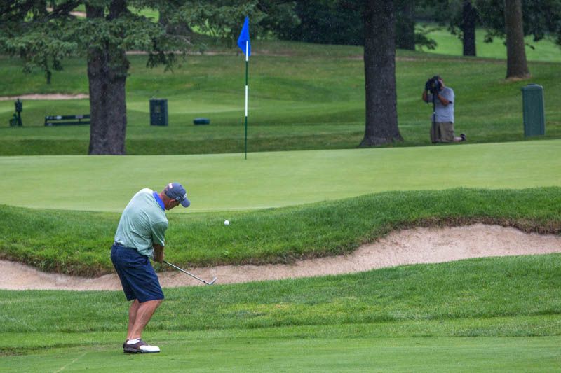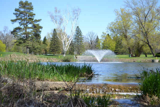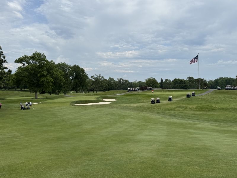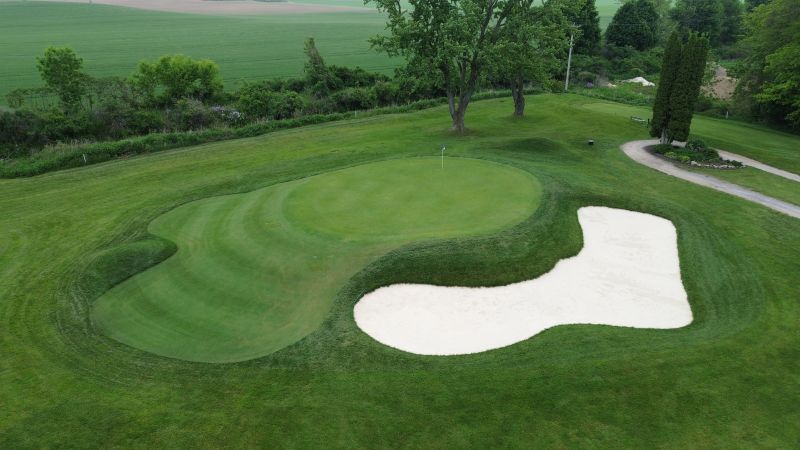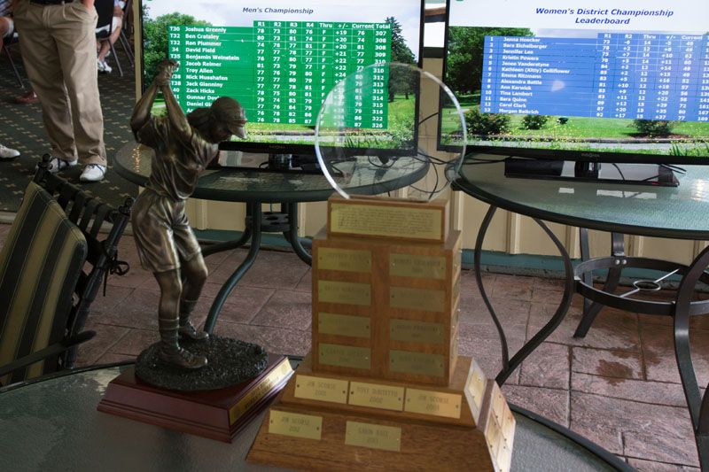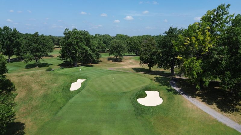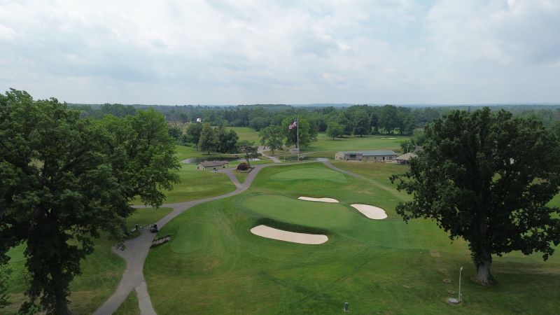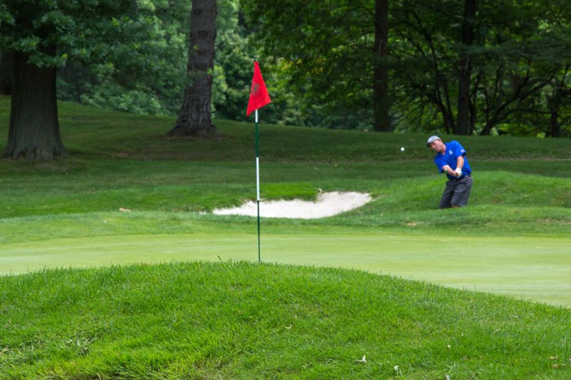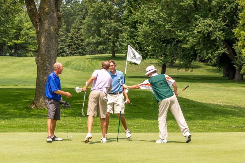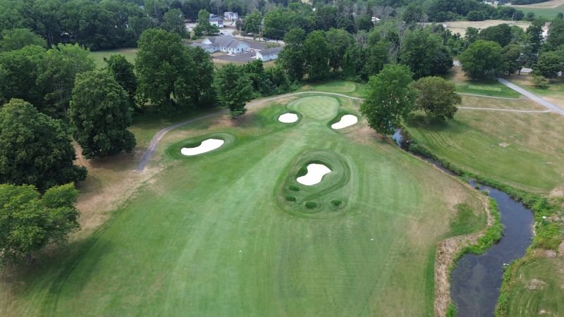 | Hole #18 – The finishing hole is a short 271-yard, par 4, that creates a "risk/reward" dilemma for the longer hitter. Fairway and greenside bunkers are well-placed to catch the errant shot, and a drive just short of the small green will result in a very delicate second shot. With the 18th hole in full view of the clubhouse lounge and the two covered patios, it has been named "the best finishing hole for spectators" in the Rochester District. |
