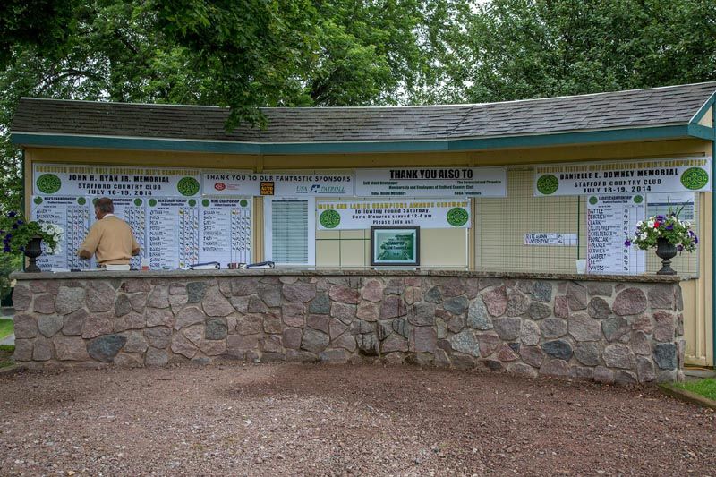 | Hole #1 – The first hole is a 380-yard, dogleg right par 4 that provides an interesting and challenging start to each round. The player who accurately places the drive in the fairway is faced with an approach shot requiring a deft touch. The small green is well-bunkered, with a spine across its middle that demands careful placement of shots to the green. Par or better on this hole is a great jump-start to your round at Stafford Country Club. |